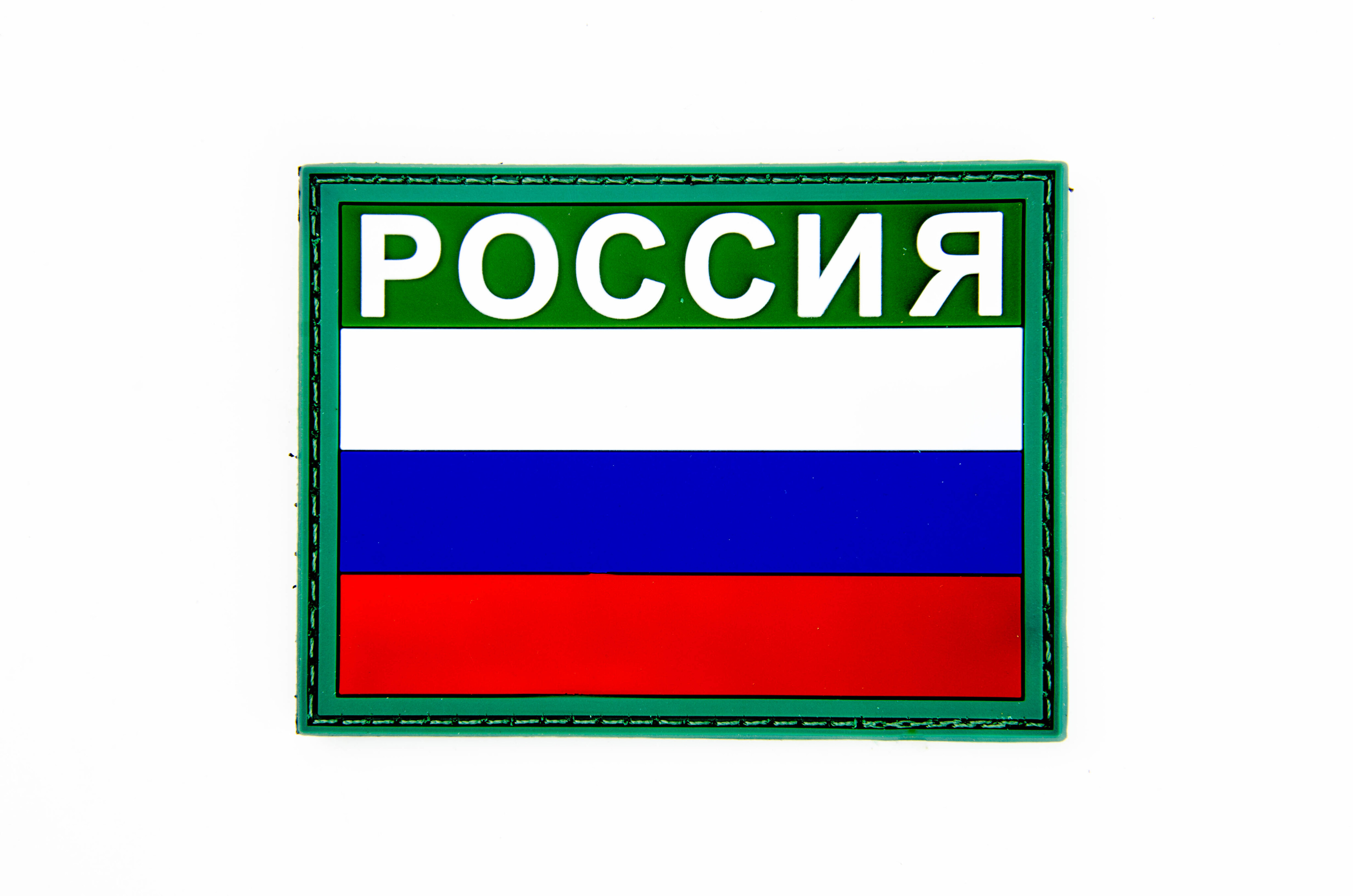 Шеврон Флаг России с надписью PVC 6х8 см. Оливковый кант