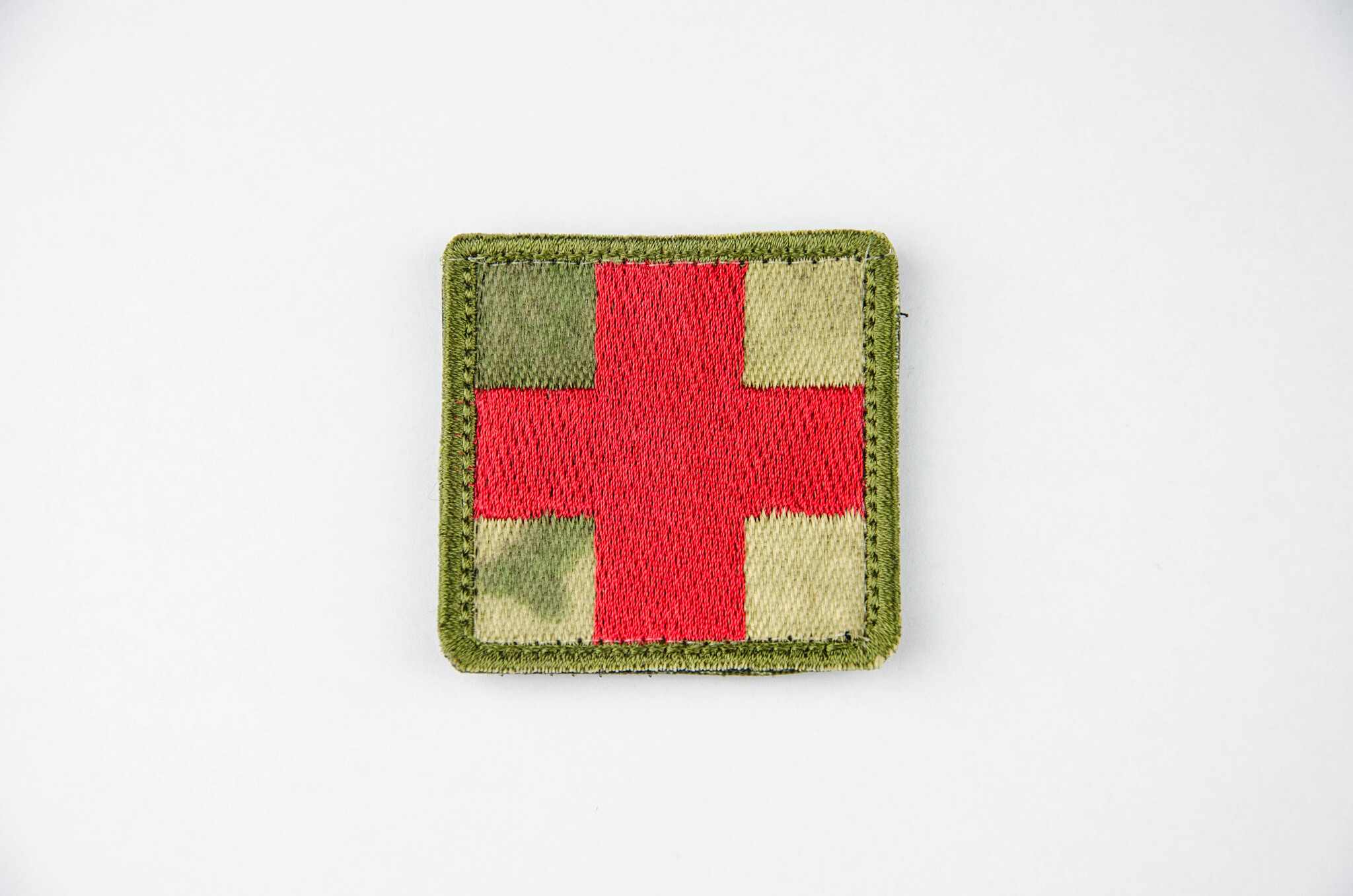 Шеврон Красный крест медика вышивка 5 см. Фон Мох